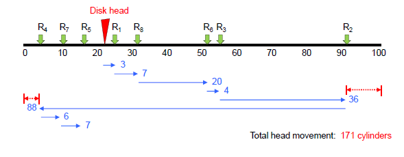 앞선 작업들은 디스크의 끝 방향에 작업이 있든 없든 가기 때문에 불필요한 움직임이 생길 수 있다.