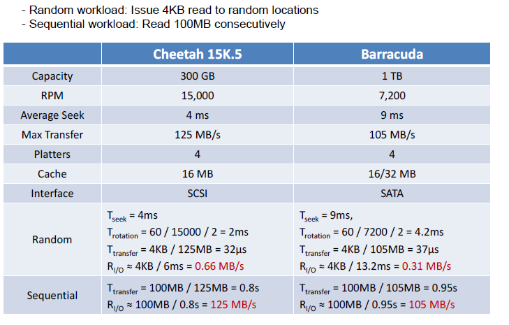 무작위 작업은 random access, 랜덤하게 흩어진 데이터를 읽을 때를 가정했고, 연속으로 데이터를 읽는 경우 데이터가 연속으로 이어진 경우를 가정했다.