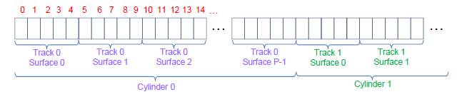 운영체제는 track들을 1차원 배열로 인식하며 인덱싱에 따라 어느 cylinder의 track에 저장할 지 결정한다.