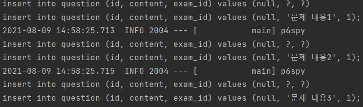 그런데, 이상한 점이 있다. exam의 PK를 알고 있기 때문에 question을 insert할 때 FK를 바로 할당할 수 있을 것 같은데, FK를 초기화하기 위한 쿼리가 두 번 날라간다.